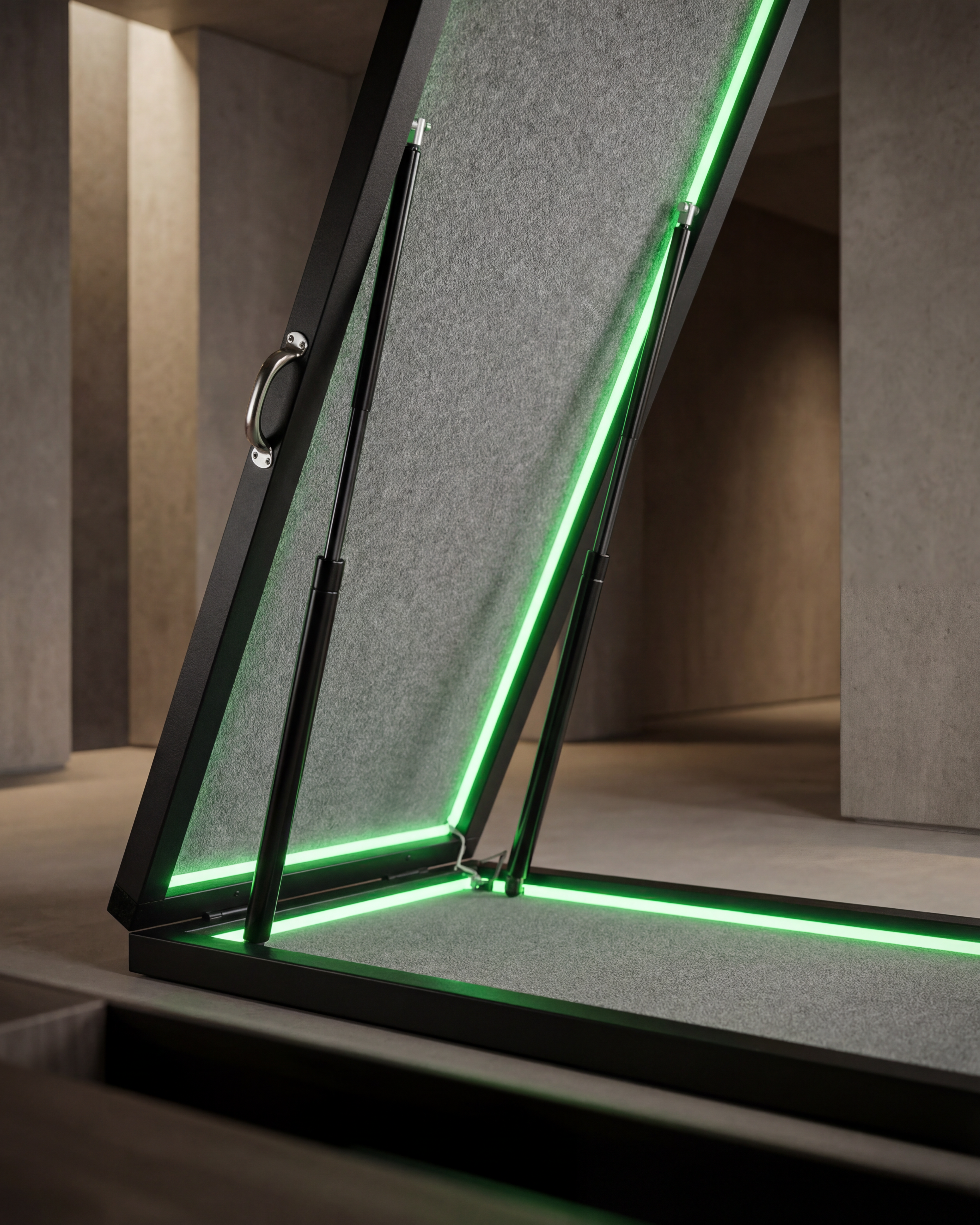 Ja. De Dartfold beschikt over gasveren met een geïntegreerde veiligheidslock, waardoor de baan niet vanzelf of onverwacht kan dichtklappen. Dit zorgt voor een gecontroleerde en veilige werking tijdens gebruik.