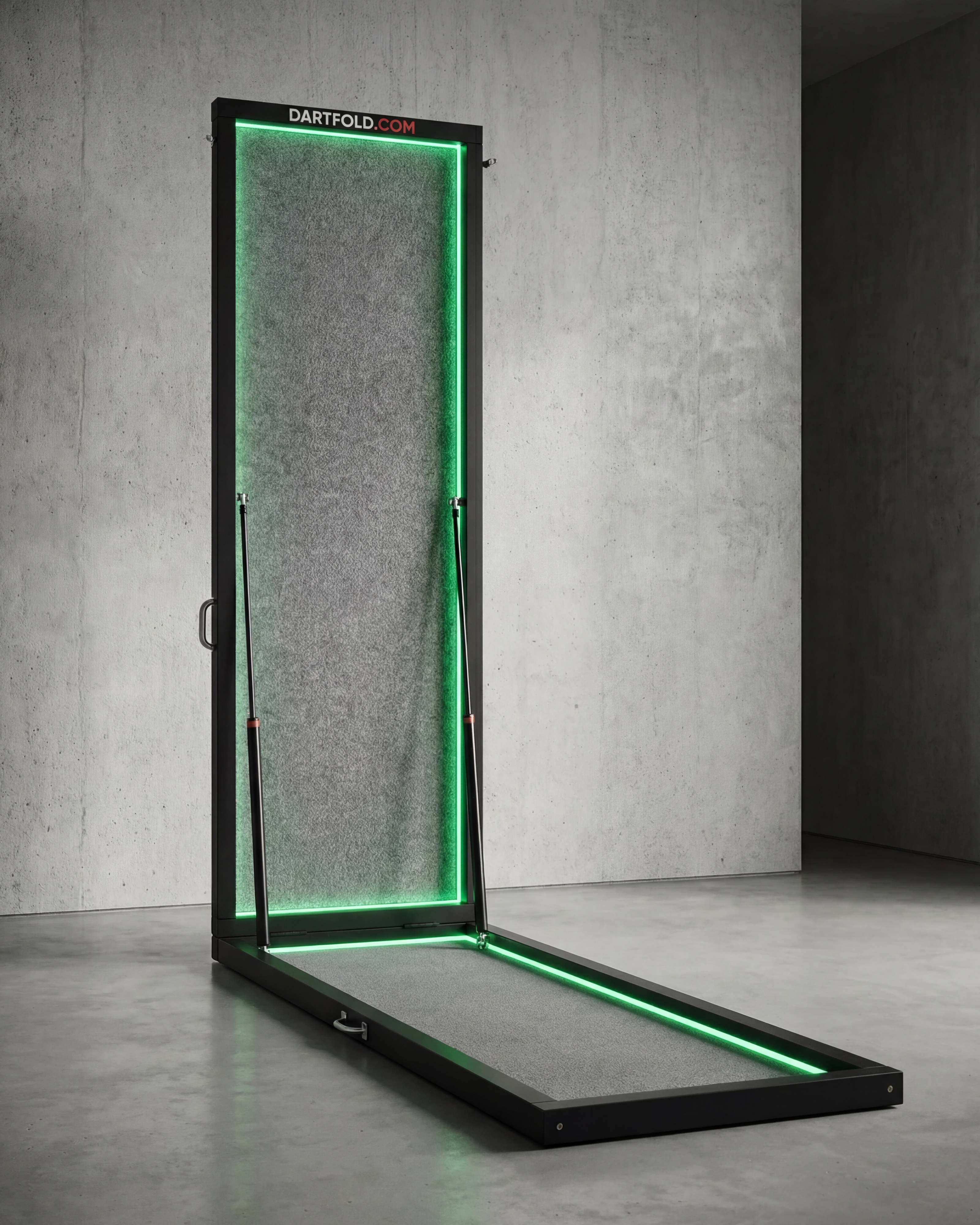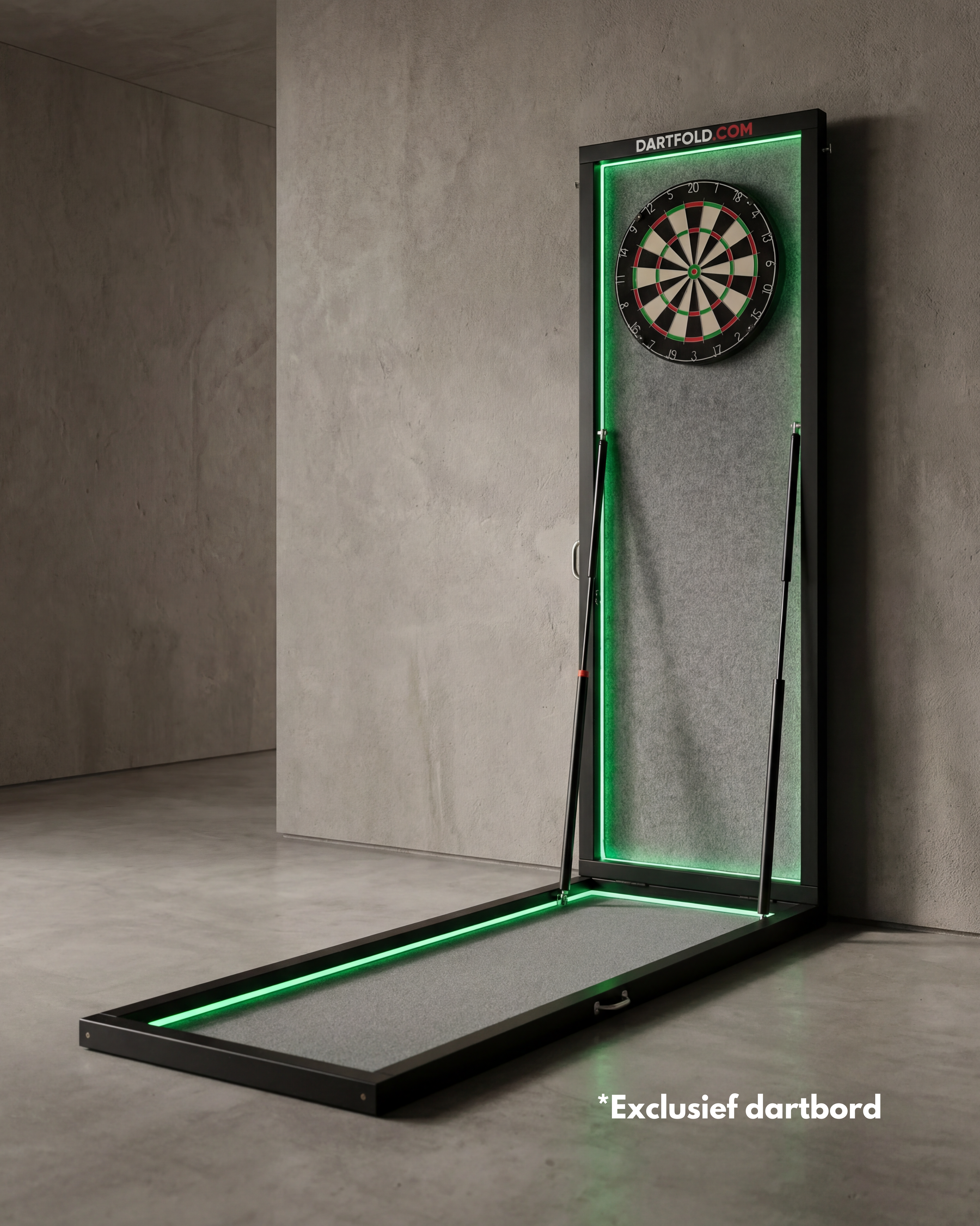 Hallo, wij zijn Dartfold. Twee broers met een simpele wens: altijd en overal kunnen darten zonder gedoe. We liepen tegen een paar dingen aan: Geen vaste plek in huis (of het mocht niet 😉) In de winter was het ijskoud in de garage. En gaten in de muur van ophanging of mis gegooide pijlen? Liever niet. Daarom bedachten we Dartfold: Een stijlvolle, opvouwbare dartbaan die je in seconden opzet, mét officiële werpafstand en zonder blijvende rommel in huis. Zo wordt elke plek je nieuwe dartspot.